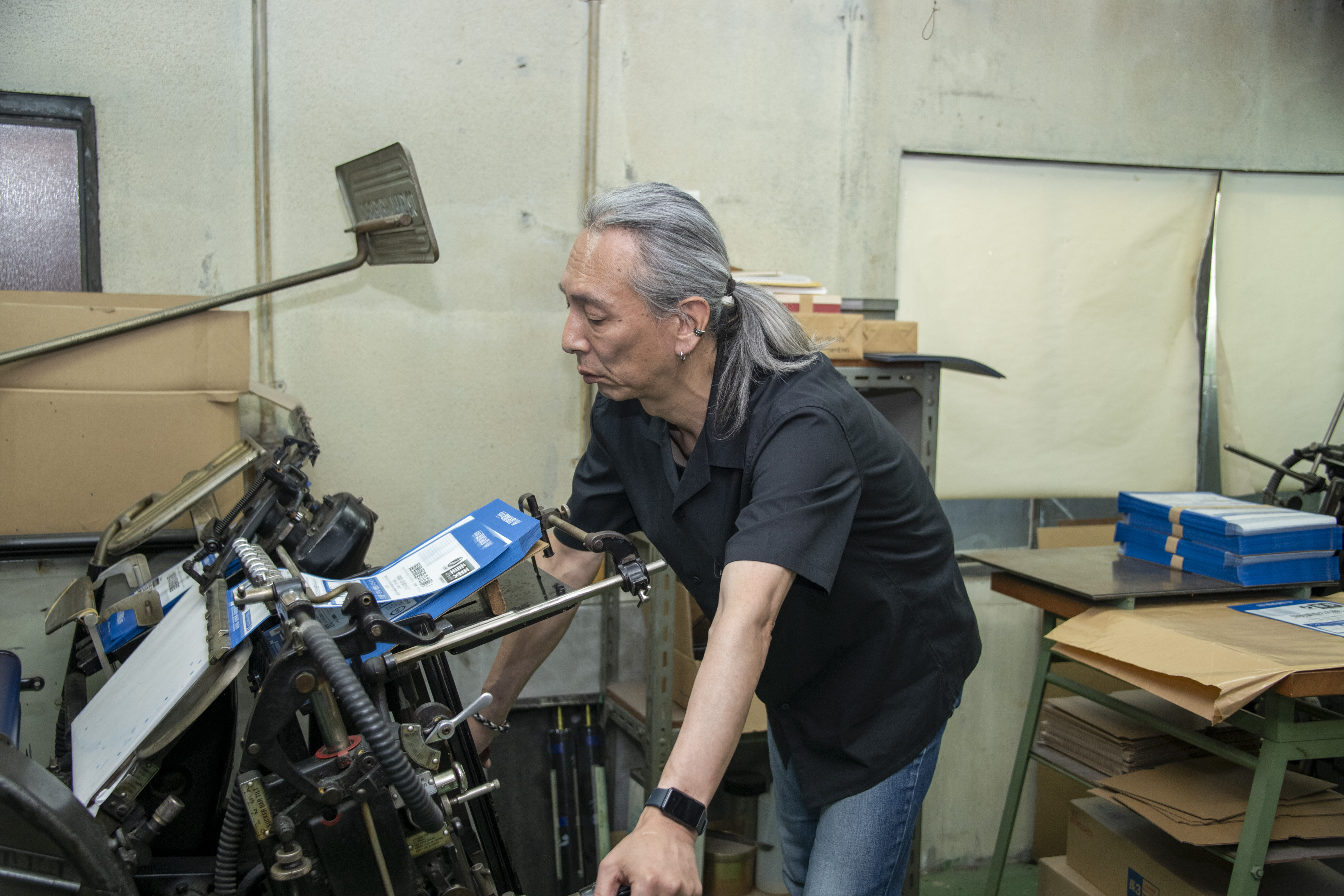 鳥取市の綜合印刷出版様は、1949年創業の老舗印刷会社。三代目の田村社長は、2024年5月にRICOH Pro C7500を導入して、スペシャルカラーを活用したユニークな企画商材を展開されています。オフセット印刷機、活版印刷機を始め、折りや製本、箔押しや穴あけなど様々な加工機を活用し一気通貫でビジネスをされているのも特長です。